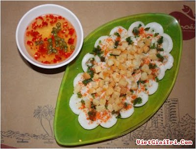 Tôm khô nấu cho ra nước ngọt, xác giã nát chấy khô để rắc thêm lên bánh. Nước tôm pha với nước mắm thêm đường ngọt ngọt mặn mặn, nấu sôi nhắc xuống để nguội. Khi ăn dằm ớt tỏi, nếu muốn thêm tí chanh.