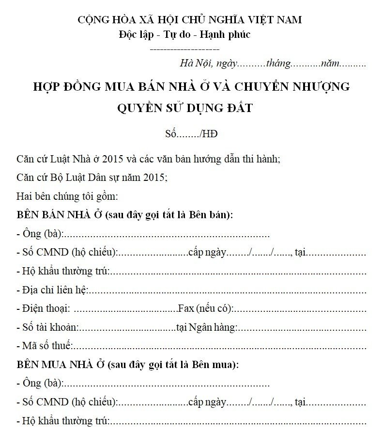 Văn bản thỏa thuận hợp tác giữa 2 bên trao đổi lại quyền sử dụng đất hay nhà ở được gọi là hợp đồng mua và bán đất. Dưới đây là mẫu hợp đồng chuyển nhượng quyền sử dụng đất, giấy bán đất mới nhất theo lao lý của luật đất đai hiện hành