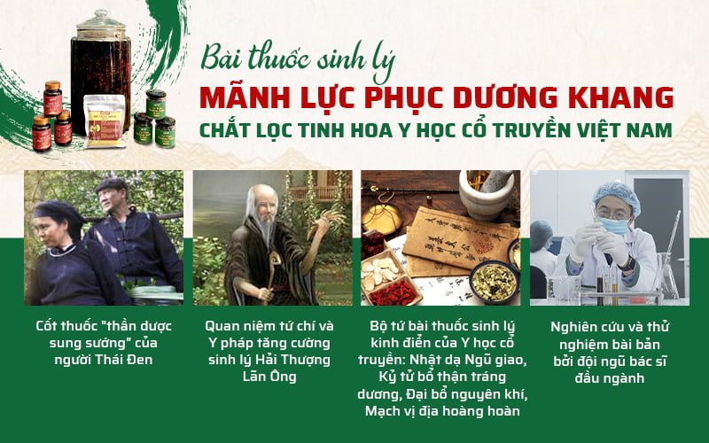 Sau nhiều cuộc nghiên cứu và điều tra, thử nghiệm khoa học, Mãnh lực Phục dương khang được hoàn thành xong với công thức ĐỘT PHÁ phối hợp sức mạnh 3 nhóm thuốc nhỏ tác động ảnh hưởng tổng lực lên khung hình phái mạnh, mang đến những hiệu quả tiêu biểu vượt trội giúp chàng tăng cường sinh lực, phục sinh tính năng sinh lý tổng lực :